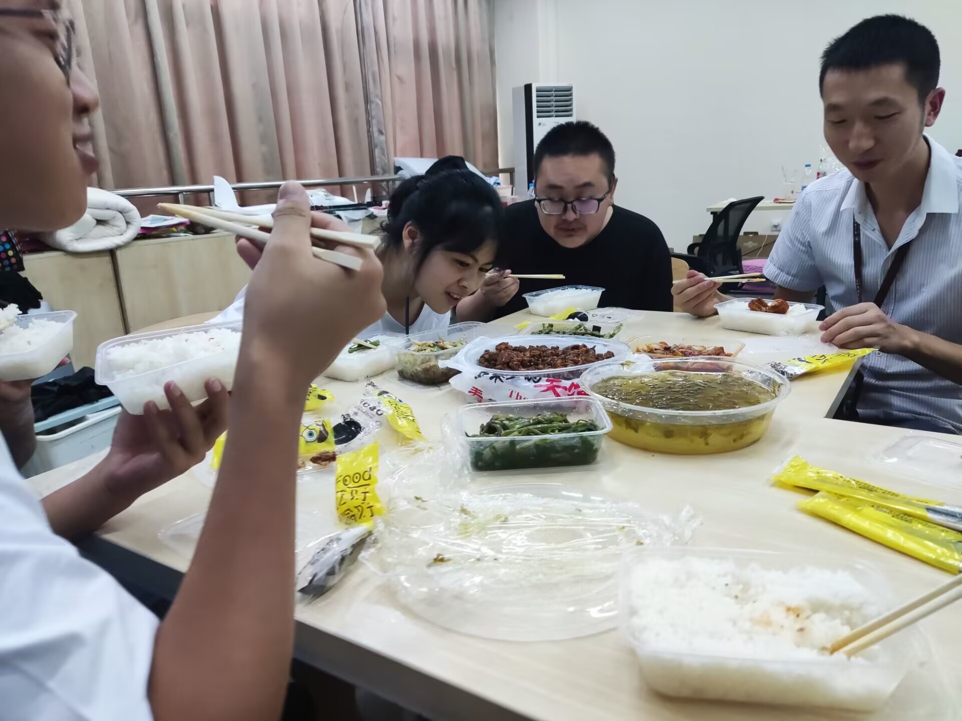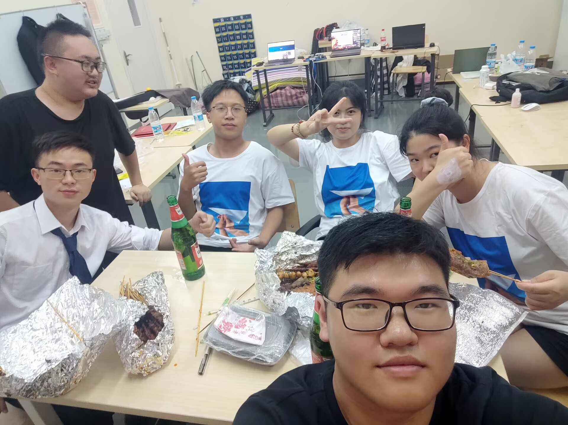 因为疫情原因省赛就没有现场进行,全部改为线上进行。我们开始了紧张的排练过程。我们通宵排练修改资料,偶尔晚上还搞了一点烧烤宵夜。