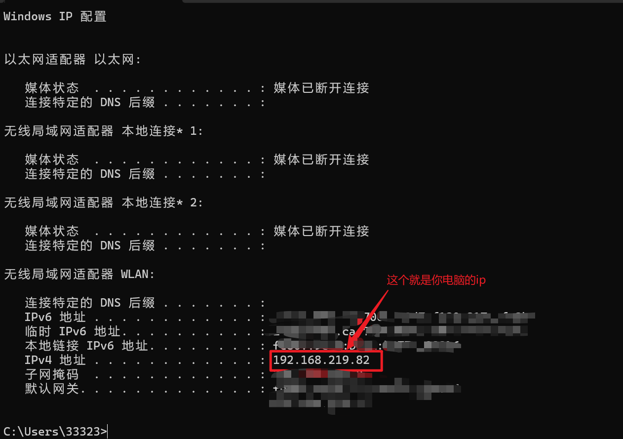- 先查看你电脑的本地 IP ,win+R 输入 cmd