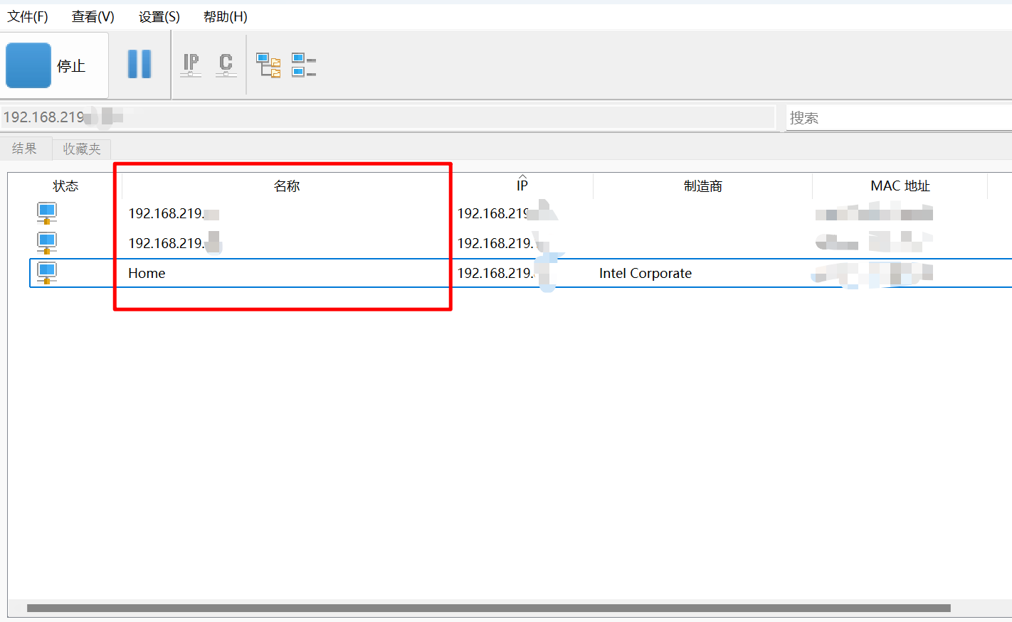 - 将192.168.219.xx粘贴到 Advanced IP Scanner 中进行查询,如果你是第一次登录,显示的名称可能是 IP,需要你每个都尝试一下。如果是你前面设置的主机名称,直接右键复制 IP 就可以了